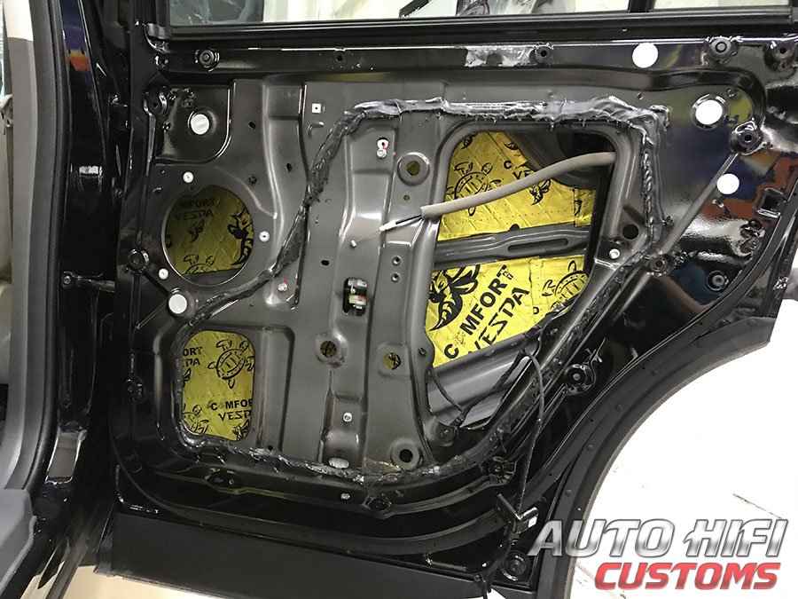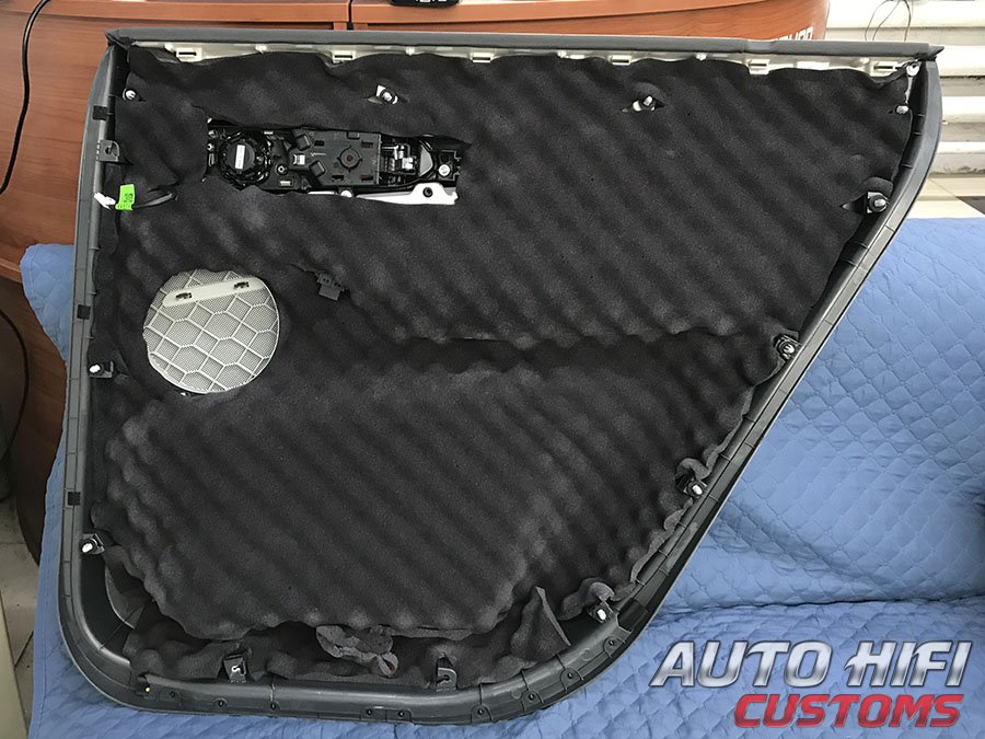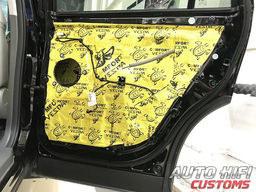Перед установкой дверных карт на свои места, наклеили под них толстый и эффективный шумоизолятор.