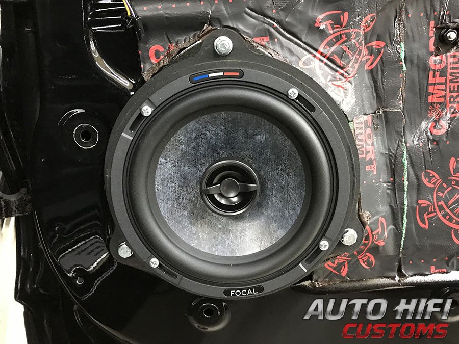 Комментарий | Чёткие французские коаксиалы Focal SlateFiber PC 165 SF установили на тыл в штатные места задних дверей с использованием готовых переходных колец из окрашенной влагостойкой фанеры AHC Ring 3 ears. |