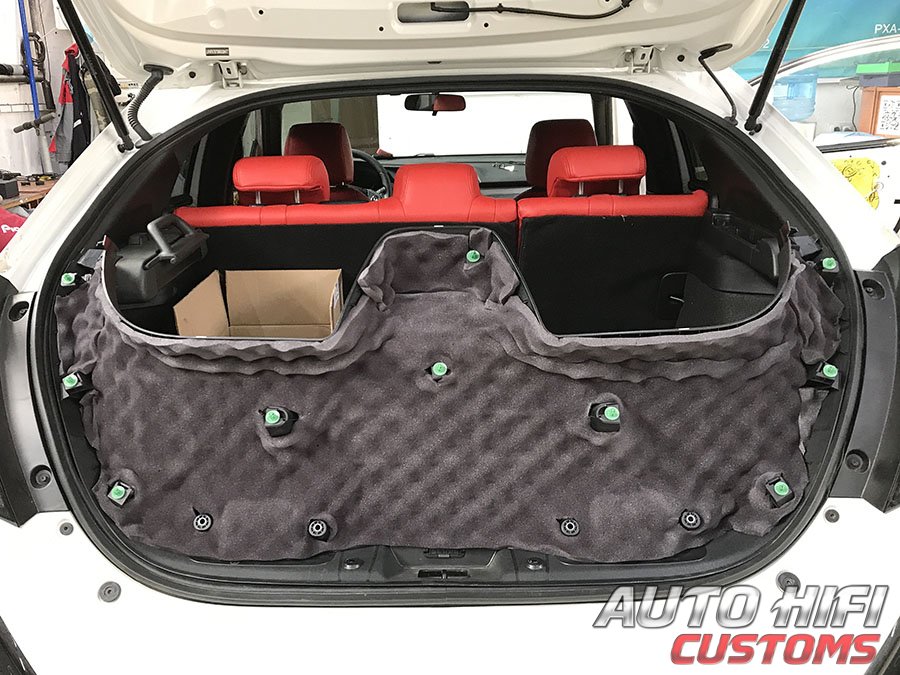 Комментарий | Крышку багажника и накладки задних стоек японского лифтбэка Honda Civic десятого поколения зашумили топовыми материалами от лидера отрасли - ярославской компании Комфорт Мат. |