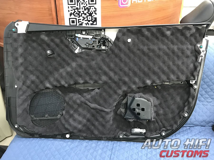 Дверные карты аккуратно демонтировали, наружный металл обезжирили и виброизолировали.