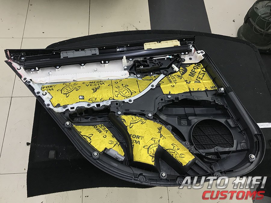 Передние двери Toyota Camry V70 зашумили топовыми материалами от лидера отрасли - ярославской компании Комфорт Мат. |