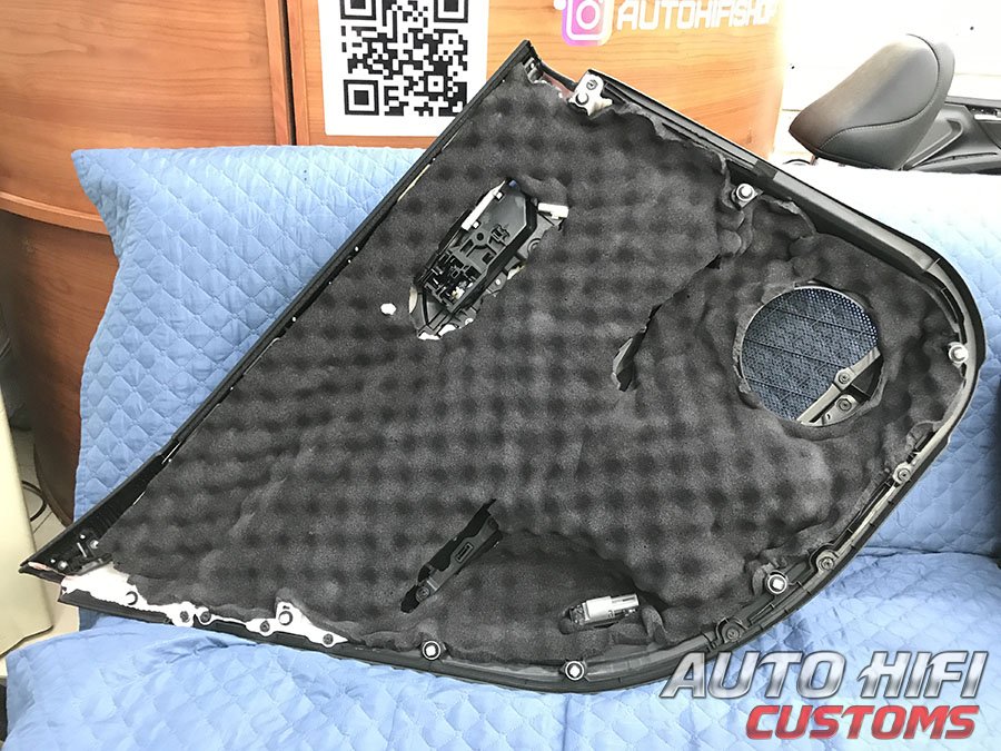 Дверные карты аккуратно демонтировали, наружный металл обезжирили и виброизолировали.