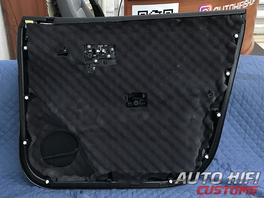 Перед установкой дверных накладок на свои места, наклеили под них толстый и эффективный шумоизолятор.