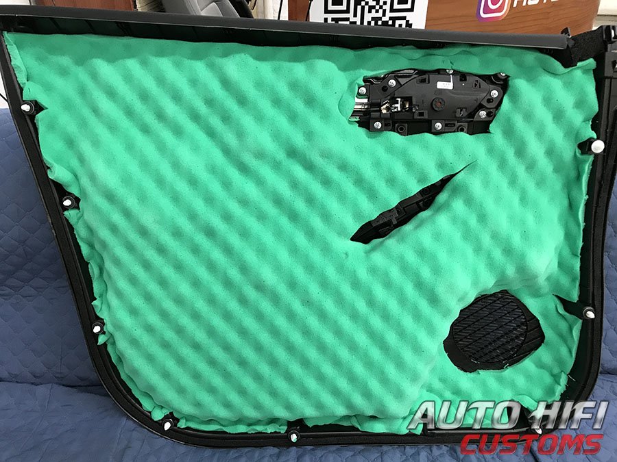 Перед установкой дверных накладок на свои места, наклеили под них толстый и эффективный шумоизолятор.