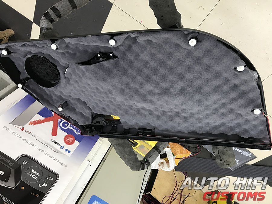 Перед установкой дверных накладок на свои места, наклеили под них толстый и эффективный шумоизолятор.