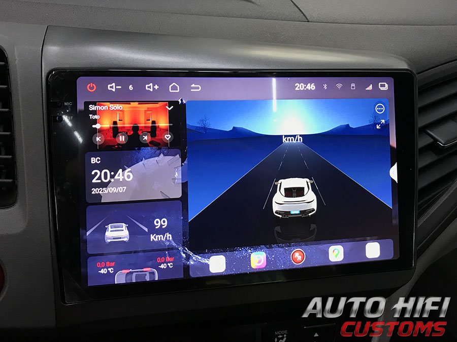 Современный мультимедийный планшет под управлением Андроид с большим сенсорным экраном с высоким качеством изображения установили в штатное место в торпедо Honda Civic девятого поколения с использованием переходной рамки и CAN-адаптера, что позволило сохранить весь штатный функционал автомобиля. |