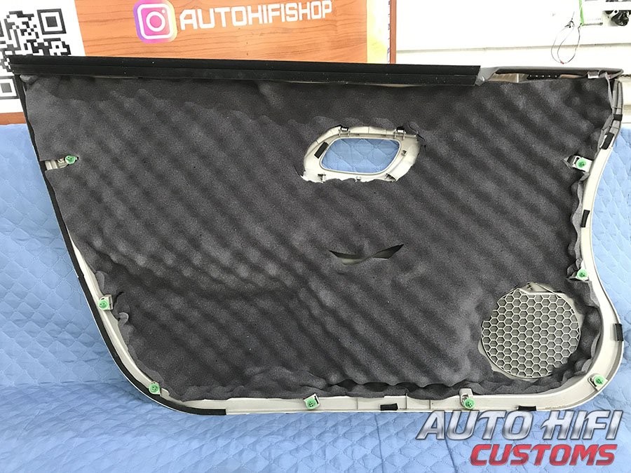 Перед установкой дверных карт на свои места, наклеили под них толстый и эффективный шумоизолятор.