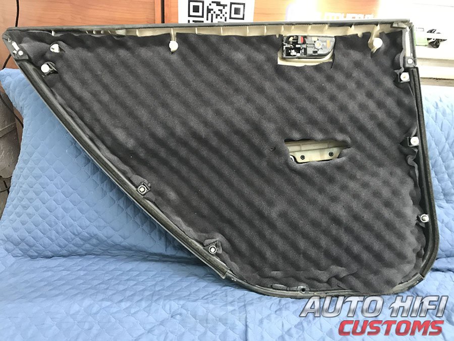 Перед установкой дверных накладок на свои места, наклеили под них толстый и эффективный шумоизолятор.
