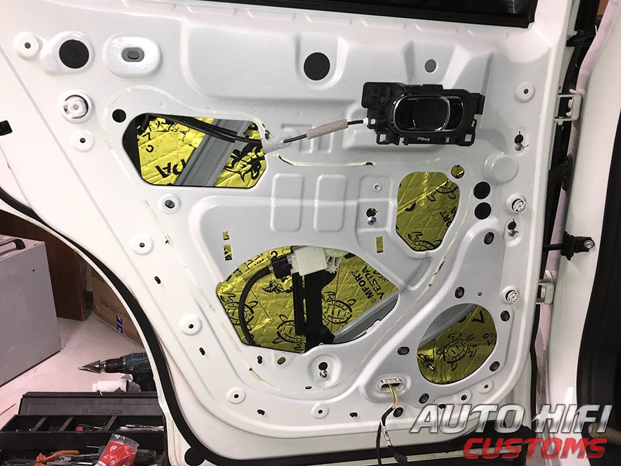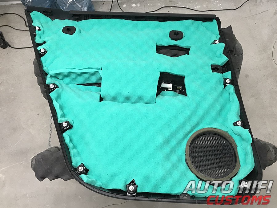 Перед установкой дверных накладок на свои места, наклеили под них толстый и эффективный шумоизолятор.