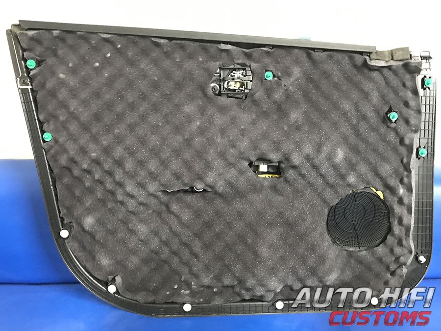 Перед установкой дверных накладок на свои места, наклеили под них толстый и эффективный шумоизолятор.