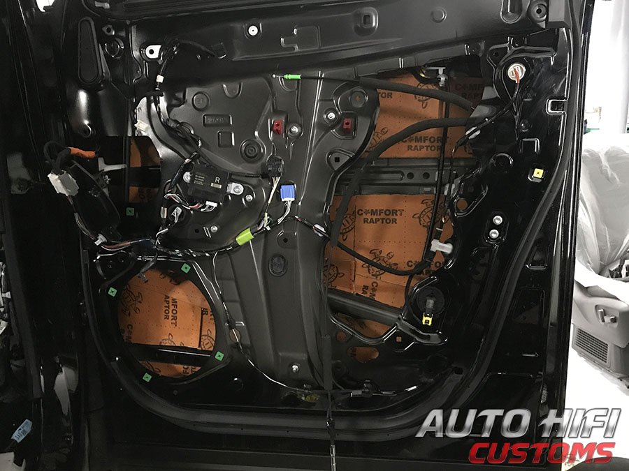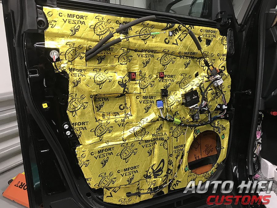 Передние двери японского микроавтобуса Toyota Alphard четвертого поколения зашумили топовыми материалами от лидера отрасли - ярославской компании Комфорт Мат. |