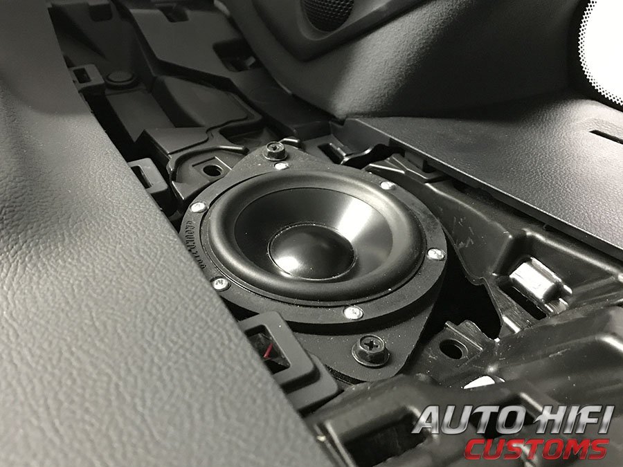 3-компонентную акустику Ground Zero GZRC 165.3SQ-ACT установили на фронт в штатные места японского микроавтобуса Toyota Alphard четвертого поколения. Твитеры отлично встали в штатные места в передних стойках, а для установки среднечастотников и мидбасов изготовили переходные кольца с креплением на заводские отверстия. |