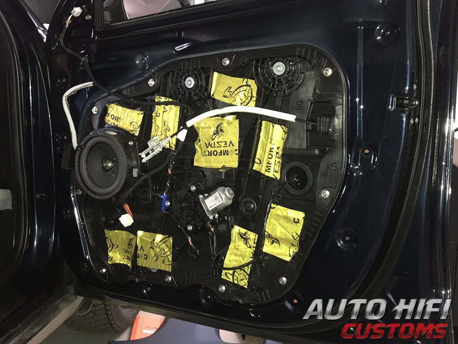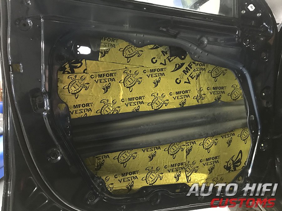 Дверные накладки и щиты аккуратно демонтировали, наружный металл обезжирили и виброизолировали.