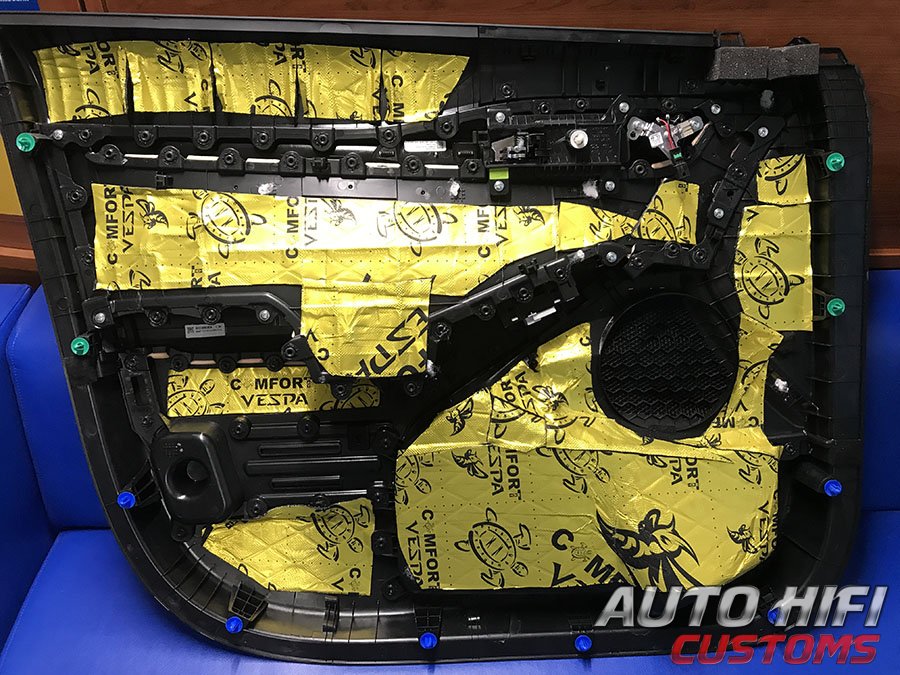 Пластик дверных карт виброизолировали.