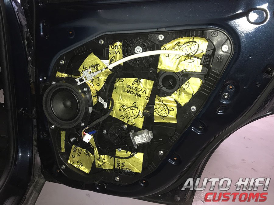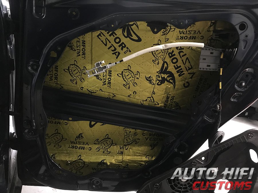 Дверные накладки и щиты аккуратно демонтировали, наружный металл обезжирили и виброизолировали.