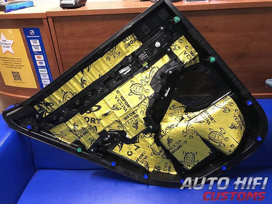 Пластик дверных карт виброизолировали.