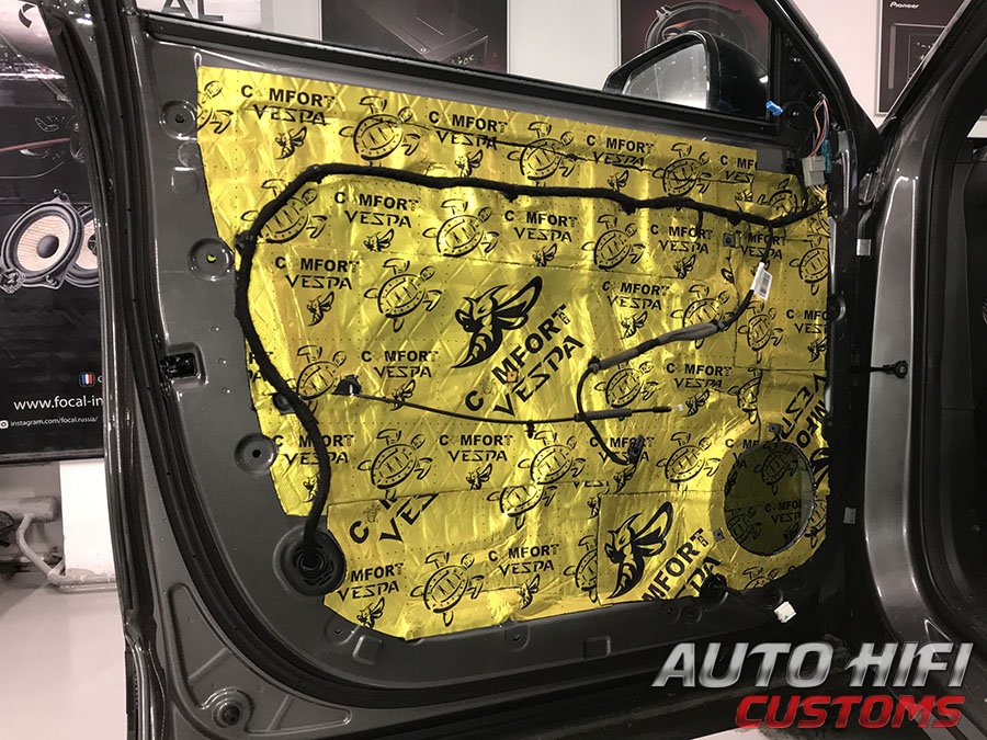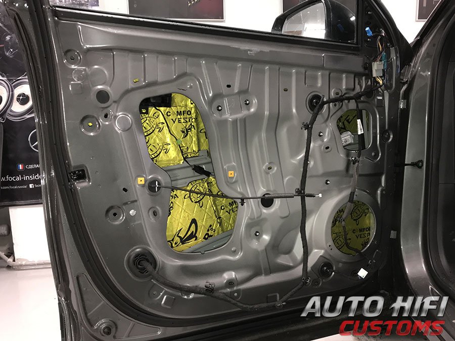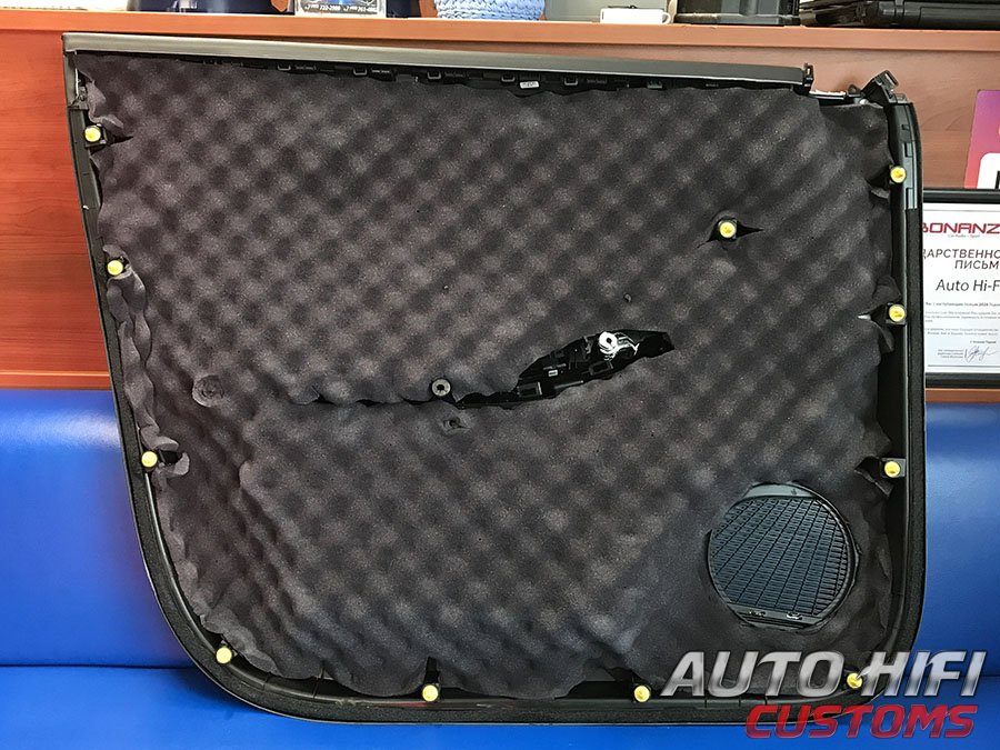 Дверные карты аккуратно демонтировали, наружный металл обезжирили и виброизолировали.
