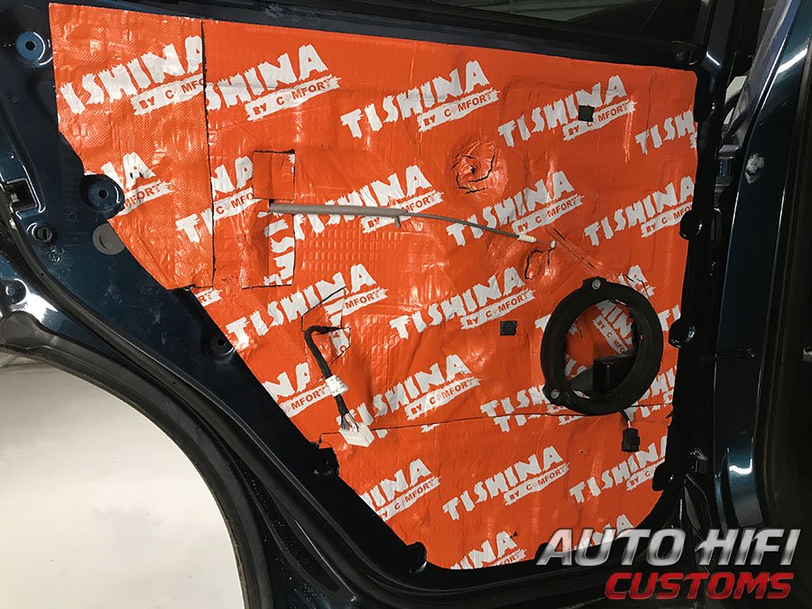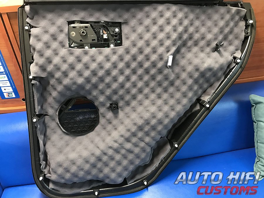 Перед установкой дверных карт на свои места, наклеили под них толстый и эффективный шумоизолятор.