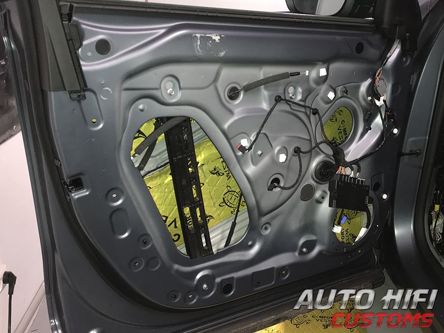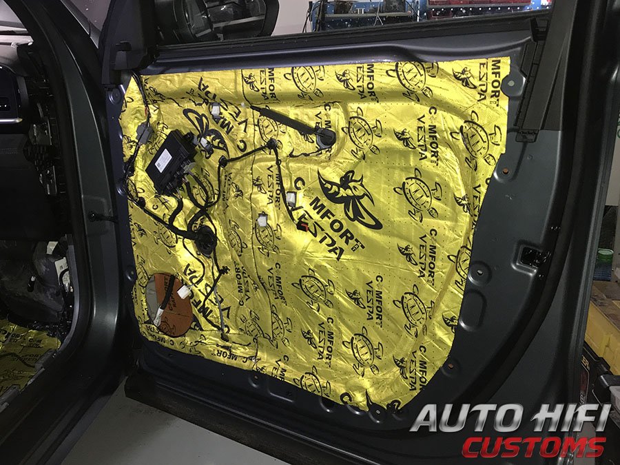Внутренний металл дверей прокатали виброизоляцией, а под дверные накладки наклеили толстый и эффективный шумоизолятор.