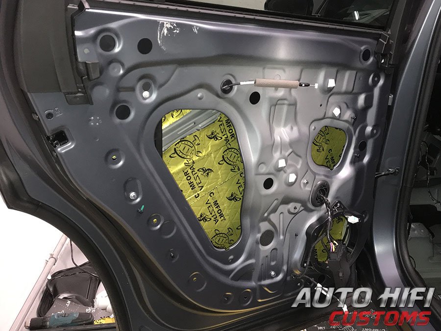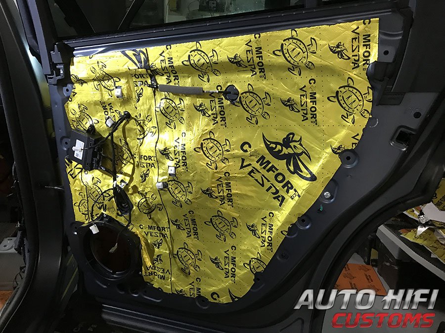 Внутренний металл дверей прокатали виброизоляцией, а под дверные накладки наклеили толстый и эффективный шумоизолятор.