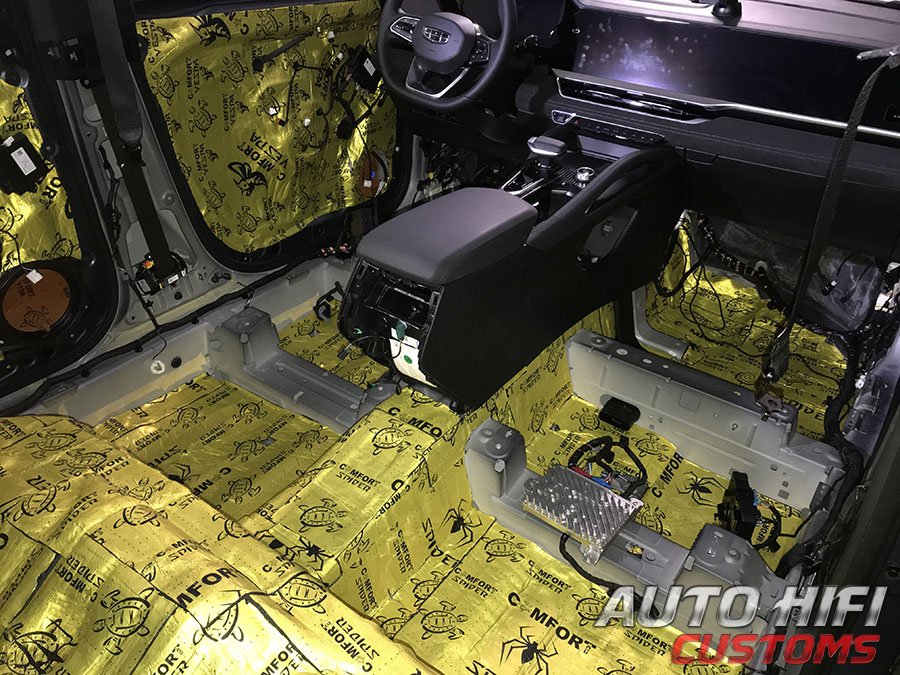 Установка шумоизоляции Comfort Mat Raptor в Geely Monjaro