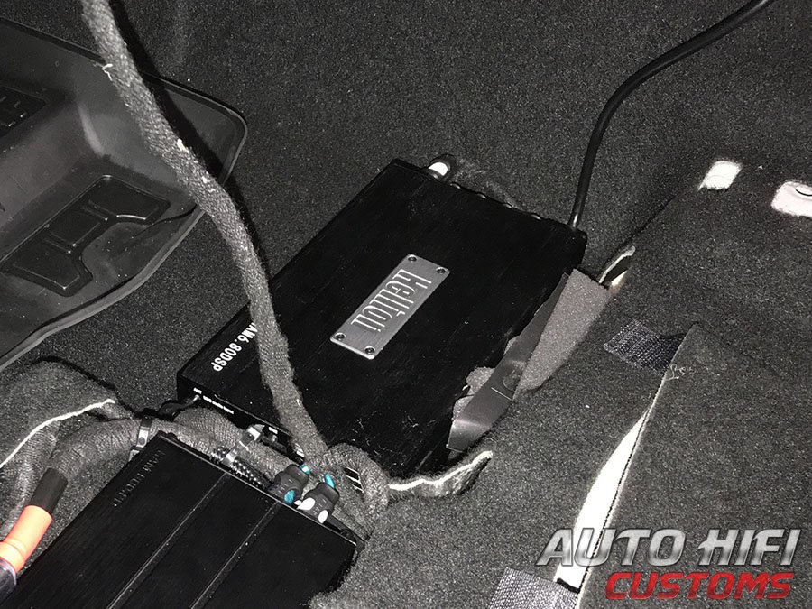 Процессорный усилитель мощности Hellion HAM6.80DSP установили под переднее сидение Belgee X50 и подключили к штатному головному устройству. С него реализовали фронтальную поканалку, усилили тыл и получили возможность грамотно задать параметры звучания для сабвуферного звена аудиосистемы через дополнительный усилитель, а также возможность прослушивания музыки с смартфона владельца по BT, миную заводскую магнитолу. |