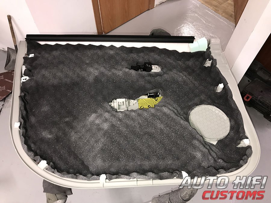 Перед установкой дверных накладок на свои места, наклеили под них толстый и эффективный шумоизолятор.