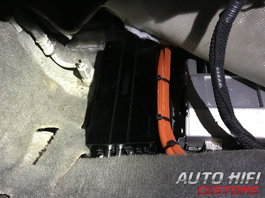 | Комментарий | 2-канальный усилитель Hellion HAM 800.2D с хорошим запасом мощности для сабвуфера установили под переднее сидение японского внедорожника TLC 150. |