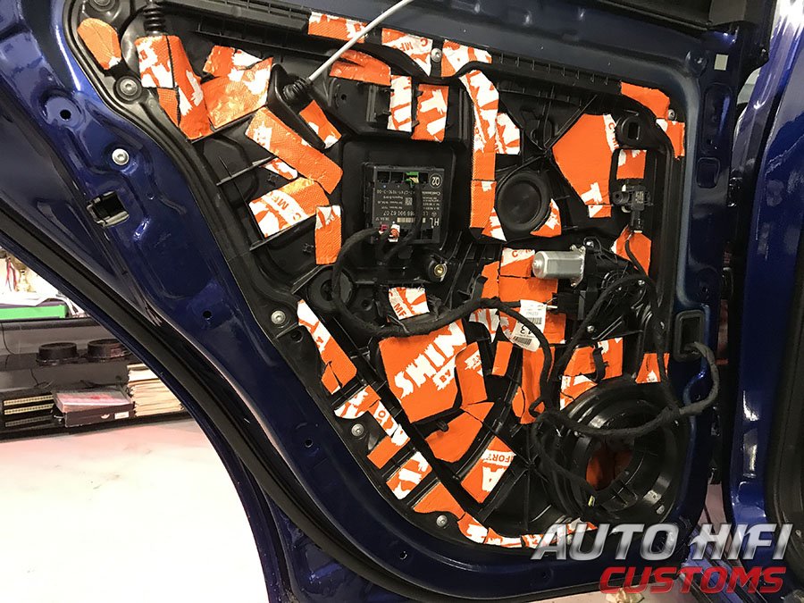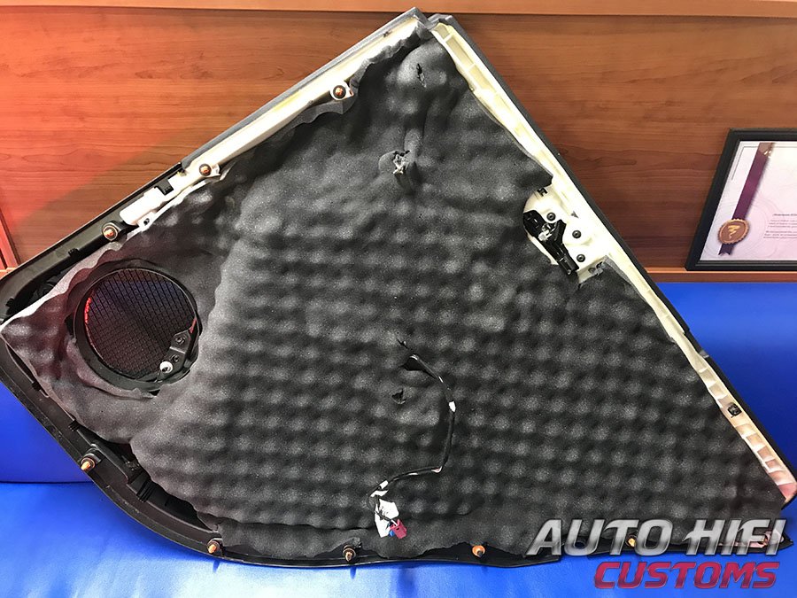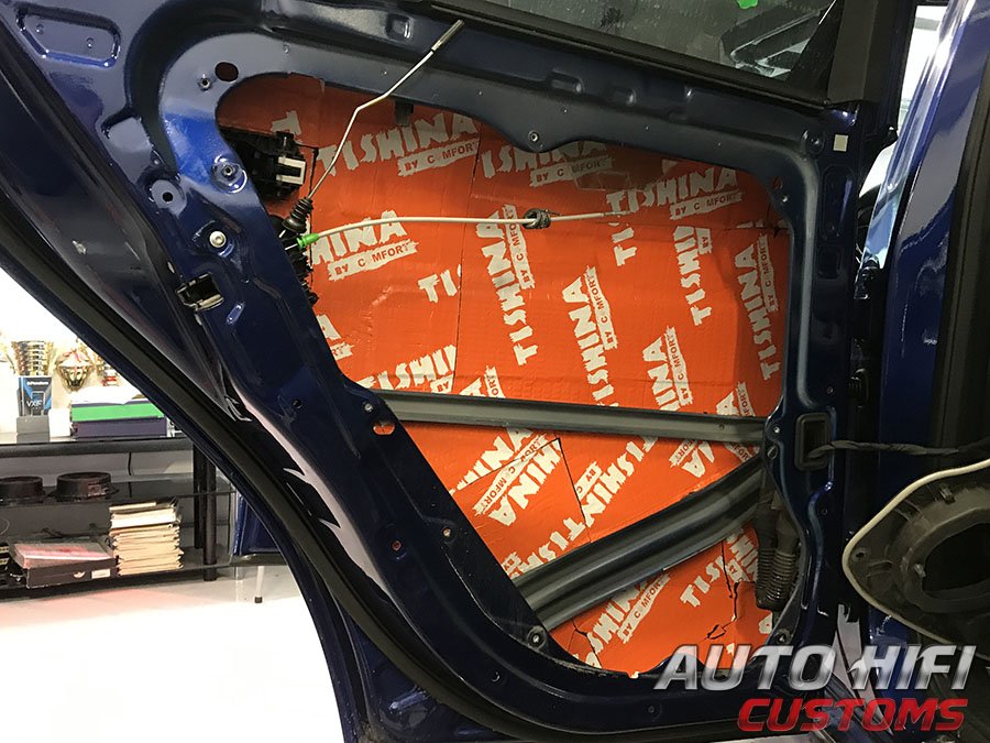 Двери аккуратно разобрали, дверные щиты демонтировали, наружный металл обезжирили и виброизолировали.