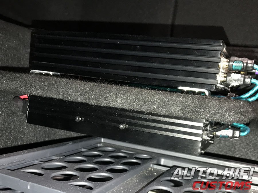 | Комментарий | Компактный и злой 2-канальник Hellion HAM 800.2D для сабвуфера аккуратно разместился под процеусем аудиосистемы Mercedes E class (W213). |