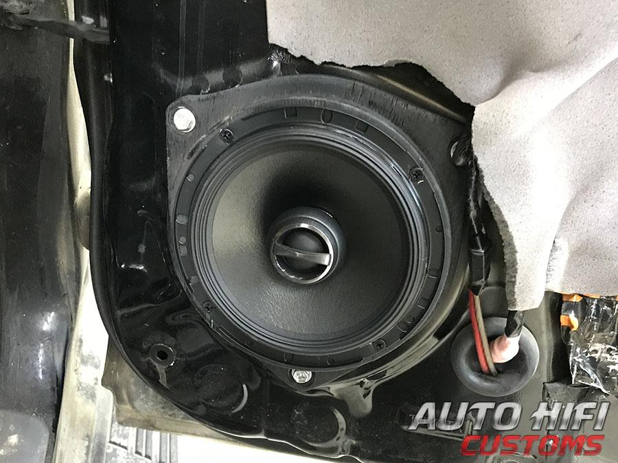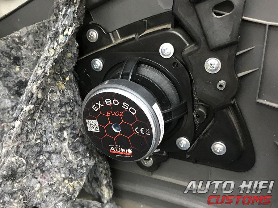 Четкие немецкие среднечастотники Audio System EX 80 SQ EVO 2 отлично встали в штатные места передних дверных карт с небольшой доработкой. В результате получился 3-компонентный фронт с поканальным усилением.