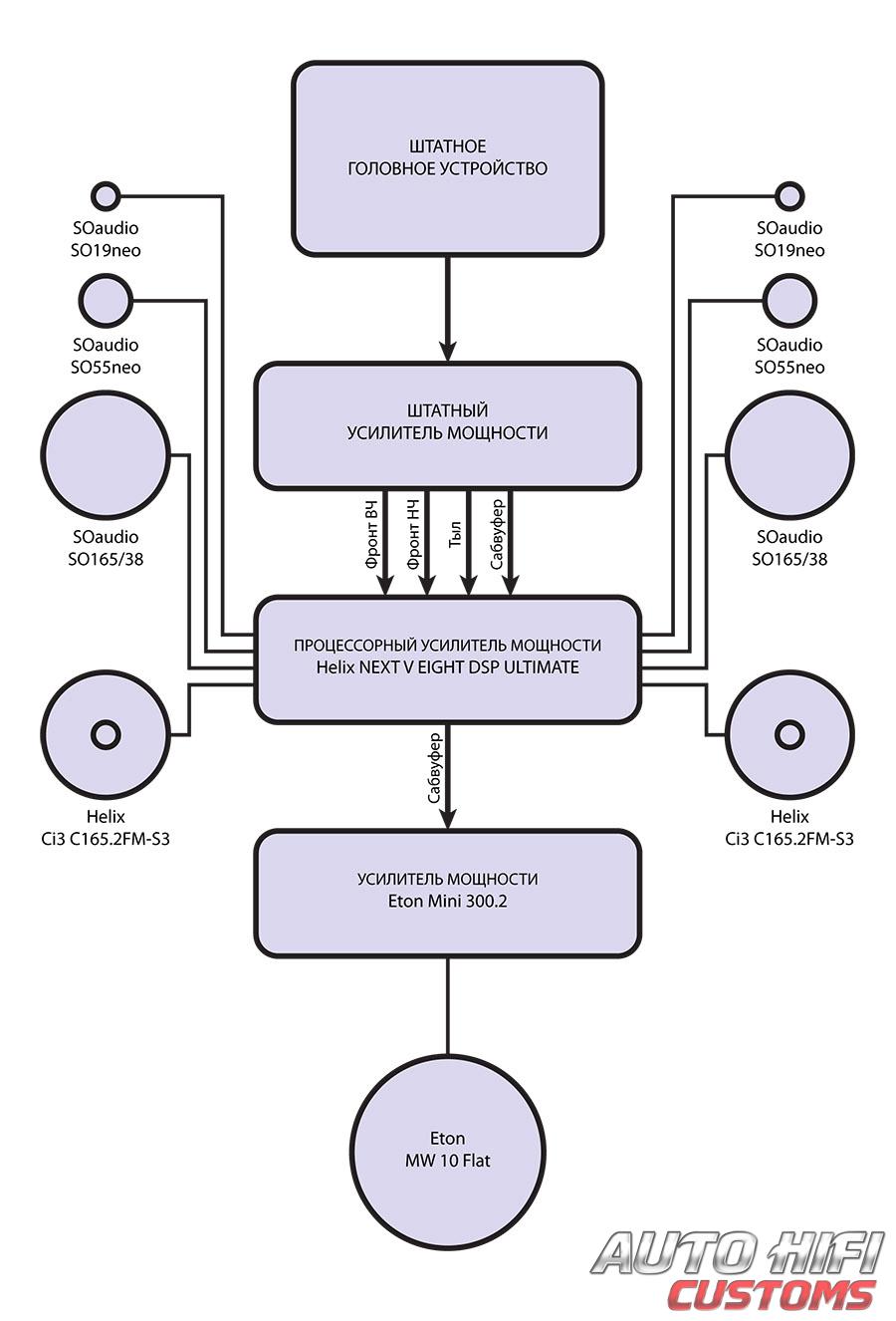 - Акустика: SOaudio SO19neo, SOaudio SO55neo, SOaudio SO165/38, Helix Ci3 C165.2FM-S3