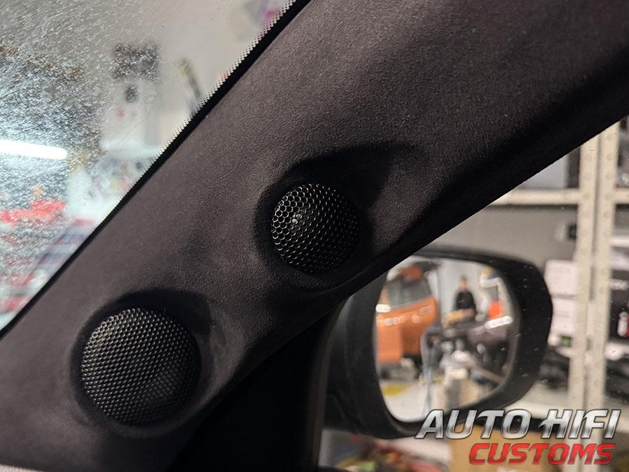 Шелковые высокочастотники SOaudio SO19neo и среднечастотники SOaudio SO55neo, произведенные в Германии, установили в переделанные передние стойки кроссовера с направлением на слушателей. Новую медную акустическую проводку проложили от процессорного усилителя до всех динамиков аудиосистемы. Прозрачные и детальные высокие частоты, а также приятный вокал и высокая детальность в среднечастотном диапазоне с такими динамиками в аудиосистеме обеспечены.
